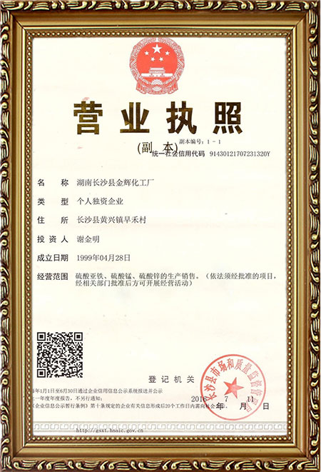 湖南長沙縣金輝化工廠是一家集研發、生產、銷售為一體的高新技術實體民營企業,公司位于湖南省長沙縣黃興鎮,其地理位置十分優越,交通便利,是一家專業生產微量元素硫酸鹽系列產品的廠家。經過十幾年的發展,公司不論是產品質量、規模還是市場占有率都在穩步拓展,是湖南地區行業內頗具實力及影響的廠商之一。根據公司發展需要,拓展業務空間,公司又新成立了長沙農友化工科技有限公司,新公司的成立能滿足和完善不同客戶的需求.為客戶提供更全面的產品配套服務。